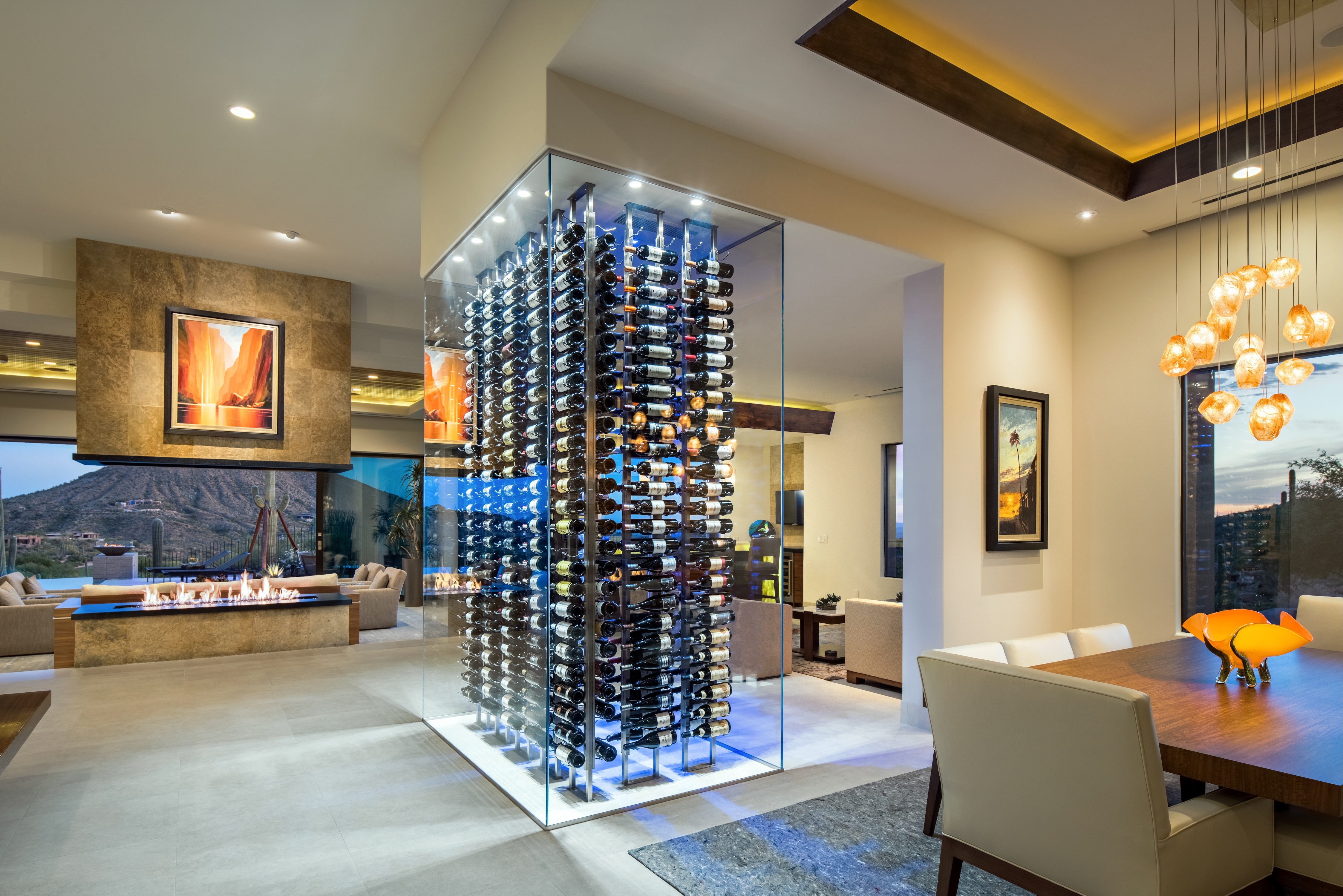 Personalize your wine cellar with art that reflects your taste. Wall-mounted wine-themed artwork or small sculptures can lend character to the space without overpowering it.